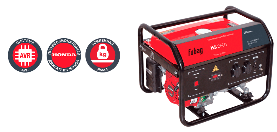 Наклонный металлический козырек над приборной панелью обеспечивает дополнительную защиту элементов панели от неблагоприятных погодных условий.Бензиновый генератор FUBAG HS 2500 в продаже по цене 0 руб. в Интернет-магазине Проф-инструмент с доставкой в Санкт-Петербурге. Звоните по телефону +8 (800) 302-10-51.