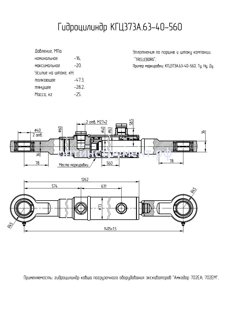 Гидроцилиндр ковша передней навески экскаваторов КГЦ 373А.63-40-560 в продаже по цене 13 440 руб. в Интернет-магазине Проф-инструмент с доставкой в Санкт-Петербурге. Звоните по телефону +8 (800) 302-10-51.