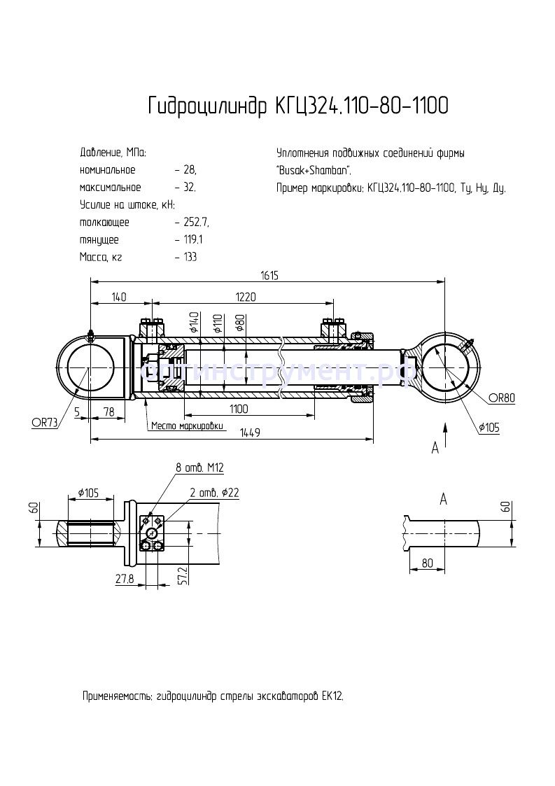 Гидроцилиндр стрелы экскаваторов "ЕК12"КГЦ 324.110-80-1100 в продаже по цене 43 095 руб. в Интернет-магазине Проф-инструмент с доставкой в Санкт-Петербурге. Звоните по телефону +8 (800) 302-10-51.