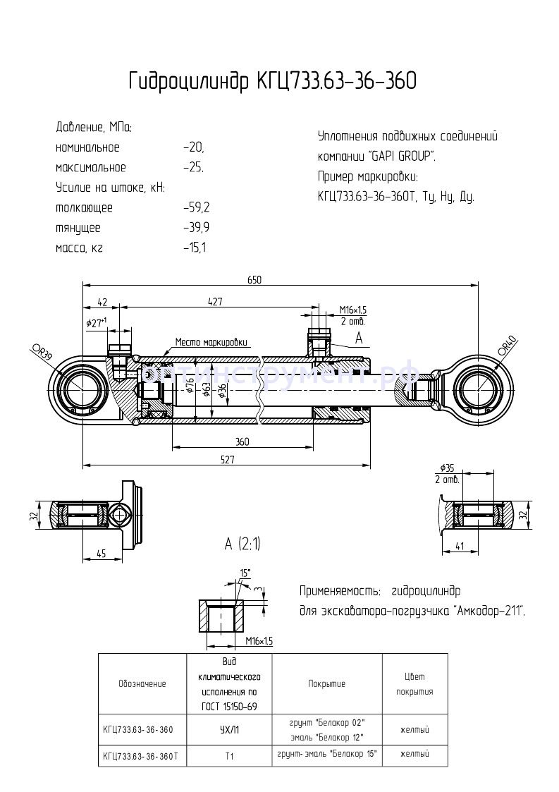 Гидроцилиндр для экскаватора-погрузчика "Амкодор-211" КГЦ 733.63-36-360 в продаже по цене 10 830 руб. в Интернет-магазине Проф-инструмент с доставкой в Санкт-Петербурге. Звоните по телефону +8 (800) 302-10-51.