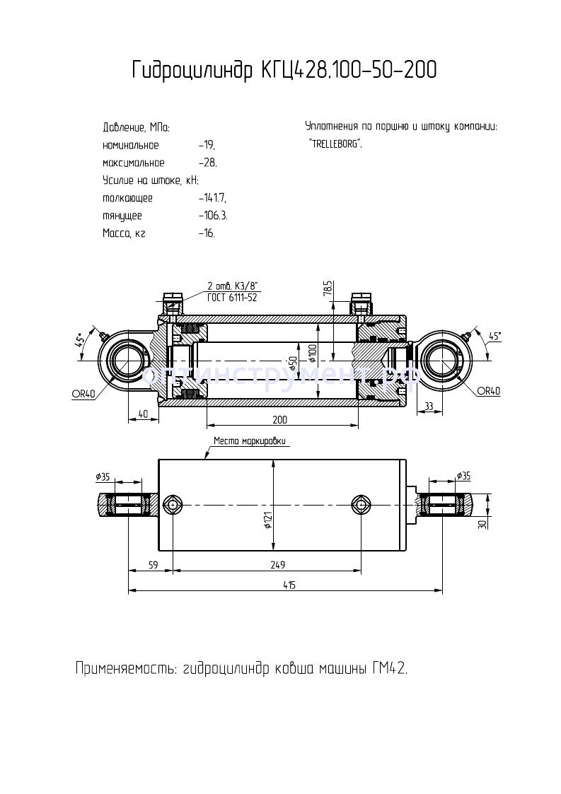 Гидроцилиндр ковша машины "ГМ42" КГЦ 428.100-50-200 в продаже по цене 13 350 руб. в Интернет-магазине Проф-инструмент с доставкой в Санкт-Петербурге. Звоните по телефону +8 (800) 302-10-51.