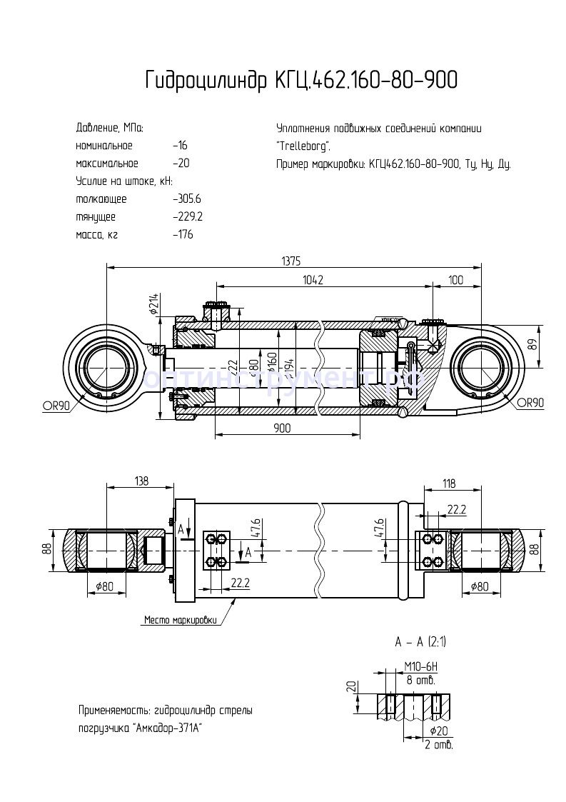Гидроцилиндр стрелы погрузчика "Амкадор-371А" КГЦ 462.160-80-900 в продаже по цене 63 555 руб. в Интернет-магазине Проф-инструмент с доставкой в Санкт-Петербурге. Звоните по телефону +8 (800) 302-10-51.