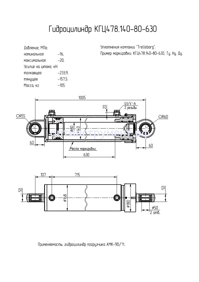 Гидроцилиндр для погрузчика "АМК-90/11" КГЦ 478.140-80-630 в продаже по цене 39 390 руб. в Интернет-магазине Проф-инструмент с доставкой в Санкт-Петербурге. Звоните по телефону +8 (800) 302-10-51.