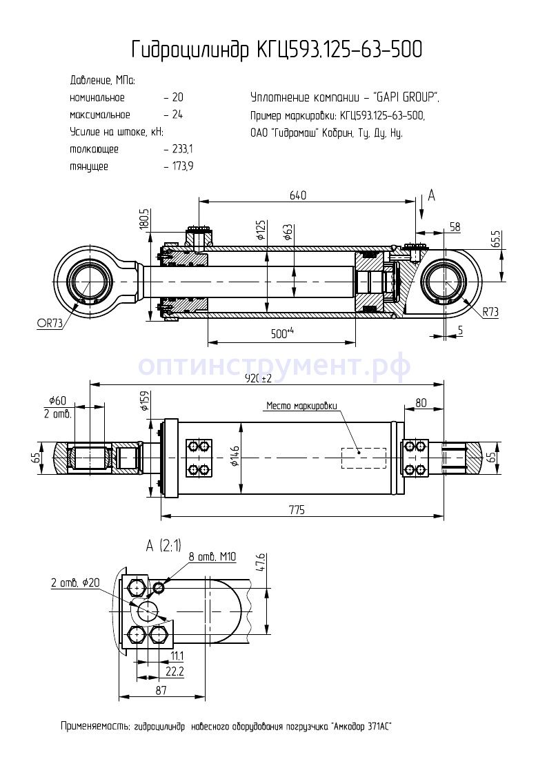 Гидроцилиндр навесного оборудования погрузчика "Амкодор 371AC" КГЦ 593.125-63-500 в продаже по цене 31 575 руб. в Интернет-магазине Проф-инструмент с доставкой в Санкт-Петербурге. Звоните по телефону +8 (800) 302-10-51.
