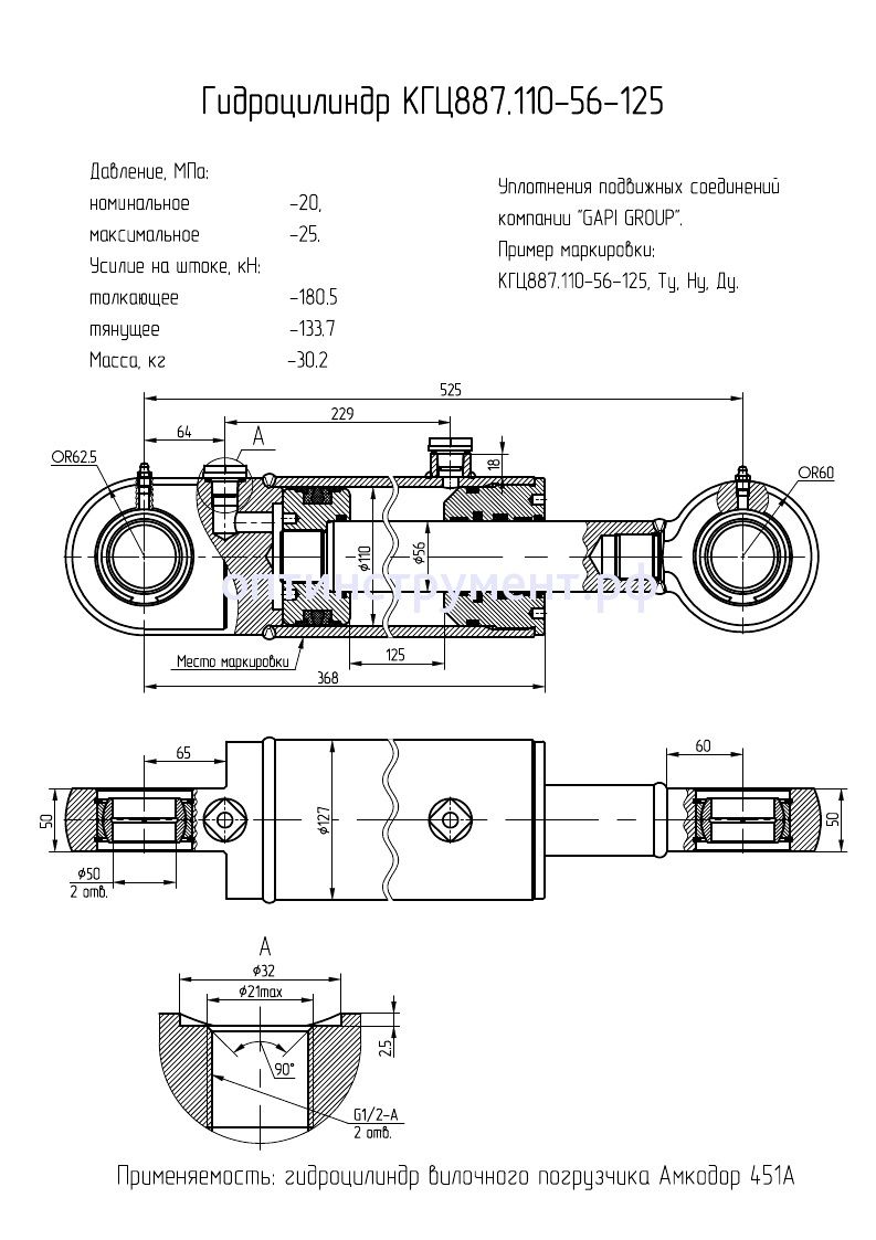 Гидроцилиндр вилочного погрузчика "Амкодор 451А" КГЦ 887.110-56-125 в продаже по цене 18 675 руб. в Интернет-магазине Проф-инструмент с доставкой в Санкт-Петербурге. Звоните по телефону +8 (800) 302-10-51.