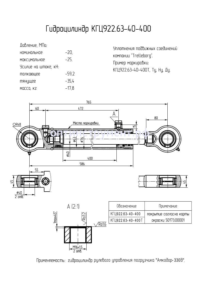 Гидроцилиндр рулевого управления погрузчика "Амкодор-330В" КГЦ 922.63-40-400 в продаже по цене 13 590 руб. в Интернет-магазине Проф-инструмент с доставкой в Санкт-Петербурге. Звоните по телефону +8 (800) 302-10-51.