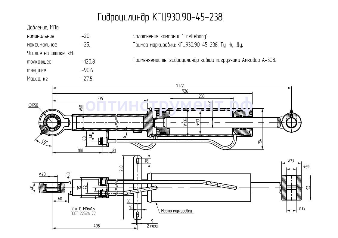 Гидроцилиндр ковша погрузчика "Амкодор А-308" КГЦ 930.90-45-238 в продаже по цене 0 руб. в Интернет-магазине Проф-инструмент с доставкой в Санкт-Петербурге. Звоните по телефону +8 (800) 302-10-51.