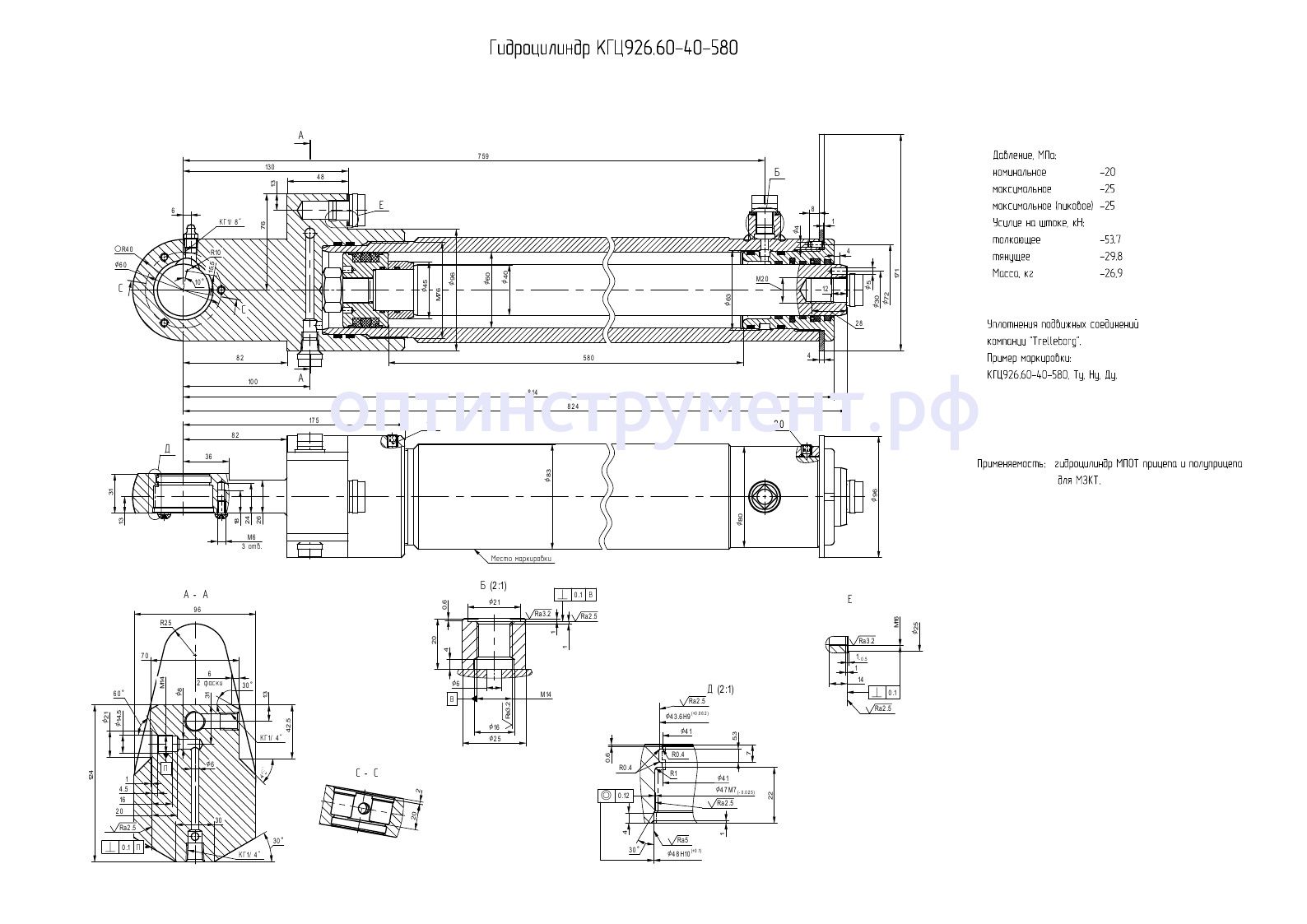 Гидроцилиндр МПОТ прицепа и полуприцепа для "МЗКТ" КГЦ 926.60-40-580 в продаже по цене 0 руб. в Интернет-магазине Проф-инструмент с доставкой в Санкт-Петербурге. Звоните по телефону +8 (800) 302-10-51.
