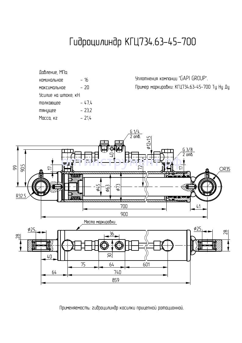Гидроцилиндр косилки прицепной ротационной КГЦ 734.63-45-700 в продаже по цене 0 руб. в Интернет-магазине Проф-инструмент с доставкой в Санкт-Петербурге. Звоните по телефону +8 (800) 302-10-51.