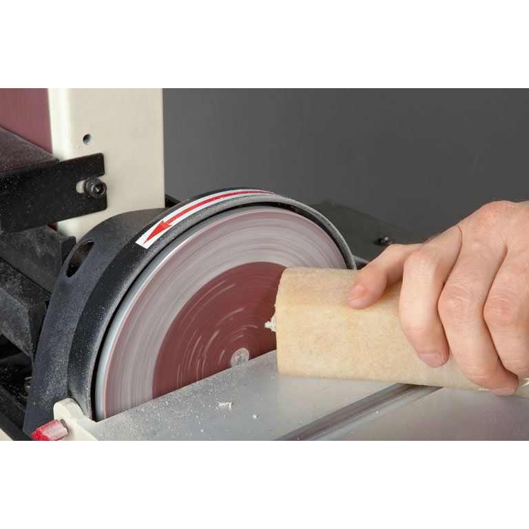 Jet JSG-64 тарельчато-ленточный шлифовальный станок для использования в столярной мастерской при любительской работе с деревом. Спектр решаемых задач очень широк: шлифовка торцов, кромок и плоских деревянных поверхностей, скругление граней, удаление старых покрытий, возможна и заточка инструмента.