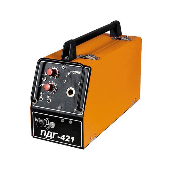 Полуавтомат предназначен для полуавтоматической сварки на постоянном токе плавящейся электродной проволокой в среде защитных газов в комплекте с источниками для МИГ/МАГ сварки. ПДГ-421 (c 4 роликовым подающим механизмом) обеспечивает стабильную подачи проволоки качественную сварку на расстоянии до 30 метров от источника при любом расположении сварочных кабелей.