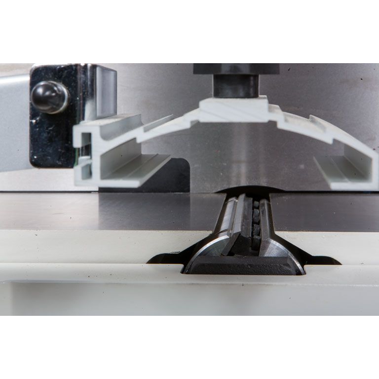 Отличительная особенность новинки – параллелограммный механизм регулировки высоты столов. В сегменте компактного оборудования такая схема получила распространение сравнительно недавно и пока еще более характерна для тяжелого промышленного оборудования. Вместо наклонных скользящих направляющих в ней используются рычаги на осях, нет ни винтов, ни эксцентриков, а усилие от рукоятки прикладывается непосредственно на сторону параллелограмма. Внутреннее трение и люфты в такой конструкции минимальны, что позволяет при настройке перемещать тяжелые столы (регулируются оба: и приемный, и разгрузочный) с наименьшими усилиями и максимально точно.