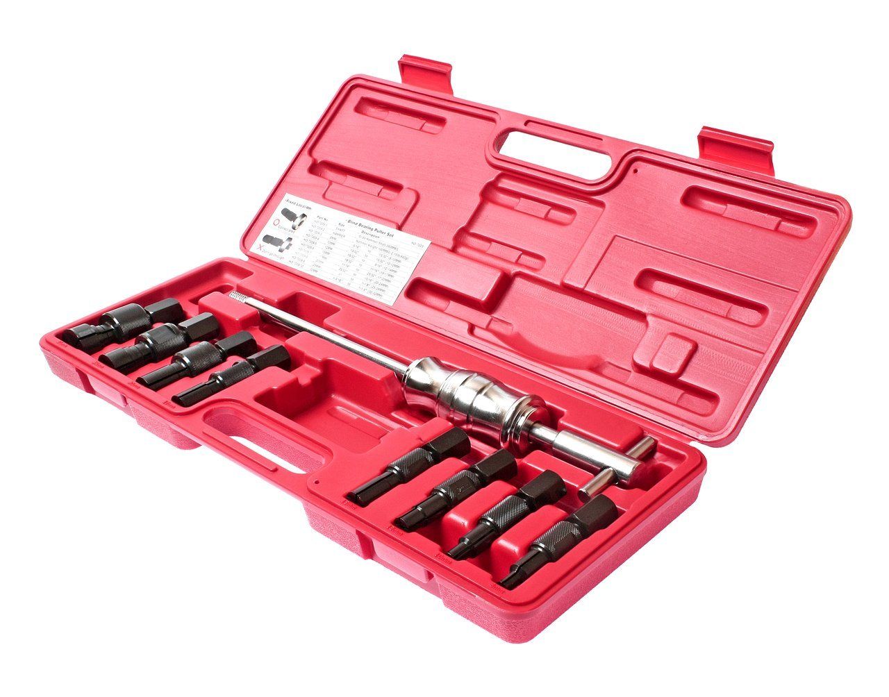- Набор представляет собой специализированную группу инструментов, предназначенных для демонтажа при обслуживании подшипников, зубчатых колес, шкивов и иных частей привода.