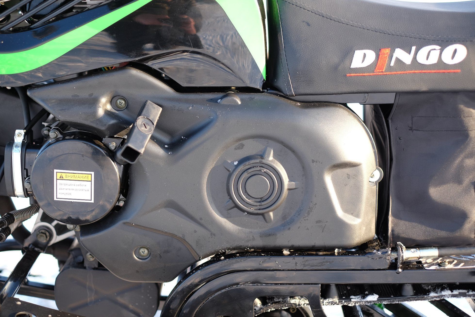 Снегоход спроектирован русскими инженерами с учетом всех замечаний владельцев предыдущих моделей. Новый Динго оснащен 4-тактным двигателем объемом 149.6 кубических сантиметров с принудительным воздушным и дополнительным масляным радиатором благодаря чему перегрев двигателя полностью исключен, а система резервного запуска (ручной стартер) позволит завести снегоход даже если аккумуляторная батарея полностью разрядится. Также инженеры компании полностью изменили систему переключения передач – на новом Dingo установлен вариатор с реверс редуктором.